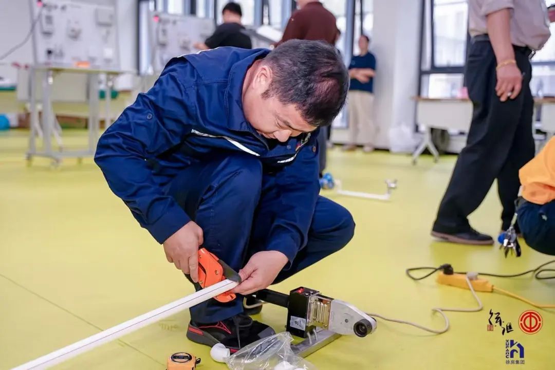 在水电维修项目现场,选手们面对模拟的复杂电路、水管难题,眼神专注而坚定,规范操作流程、争分夺秒抢修,模拟在故障抢修第一线。来自上海徐房房屋维急修中心的倪荣,手持专业工具,动作娴熟地进行家庭配电安装与水管焊接。“我们每年都会参加各级培训,今天的比赛有电路铺设和水管热熔焊接。”倪荣擦了擦额角的汗水说道,“最难的是热熔焊接,必须一次成型,稍有偏差就前功尽弃,胶带缠绕的长度、厚度也直接影响密封性。”