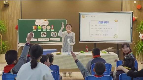 随后,学校杨璐老师执教《制作三明治》劳动技能课。本课将“数字游戏”引入课前学习环节,帮助学生熟悉制作三明治的食材与步骤,课堂中学生操作更加专注投入,真正实现了“游戏+实操”的高效联动。杨老师也表示:“这是我近年来上得最轻松的一节课,数字游戏真的提升了课堂效率。”