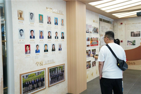 在志愿者的引导下,家长与学生踏入校史馆,开启一场穿越时光的旅程。展厅内,泛黄的老照片、珍贵的文献资料、荣誉墙上的奖杯奖状,串联起学校自1924年建校以来的发展脉络——从“爱、俭、韧、诚”的校训传承,到与高校合作办学的跨越发展,再到加入教育集团的创新突破。现场讲解聚焦学校在“生活教育”特色高中创建中取得的成果,让访客深刻感受到百年老校“传承与创新并存”的精神内核。
