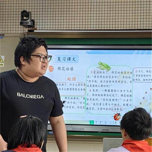 4月30日,宝山区培智学校陈晓龙老师率先执教《棉花姑娘》。课堂上,陈老师以饱满的教学热情和扎实的专业功底,带领学生深入课文。他通过生动的语言描述和递进式问题设计,引导学生逐步理解棉花姑娘向燕子求助的对话内容,并巧妙结合生活情境,帮助学生联系实际体验“请求帮助”的语言表达。评课环节中,教师们一致肯定其“稳扎稳打”的教学风格:教态亲切自然,善于用肢体语言拉近与学生的距离;面对特殊学生的认知差异,始终保持耐心引导,通过重复强化、分层提问等方式,确保每位学生都能参与课堂互动。