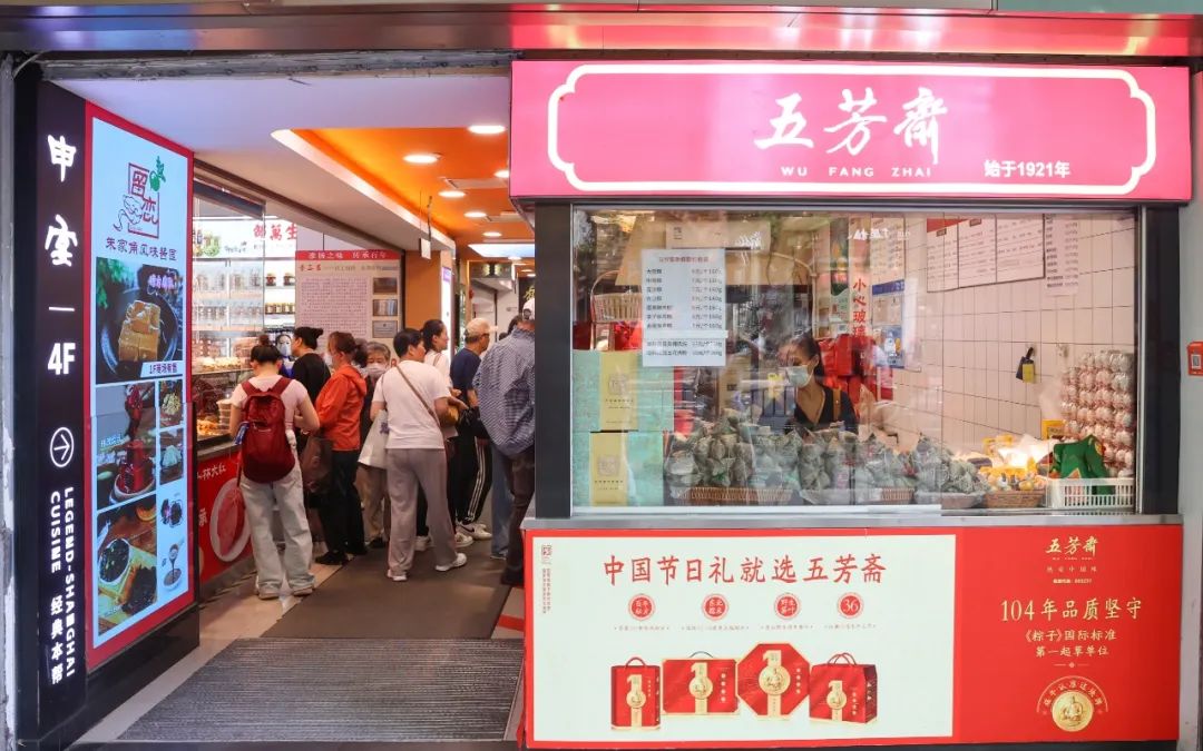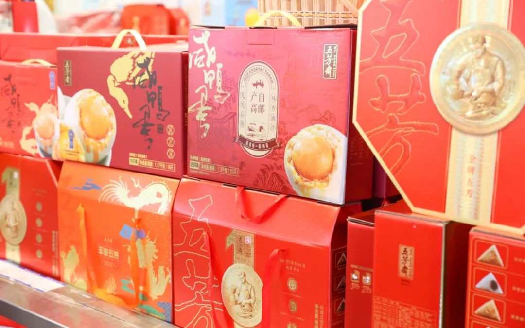 在汇联商厦的另一侧,老字号五芳斋也推出了爆料双蛋黄猪肉粽和爆料红烧五花肉粽两款新口味粽子,并搭配了8款包含各种口味粽子和咸鸭蛋的礼盒,方便市民馈赠亲友。