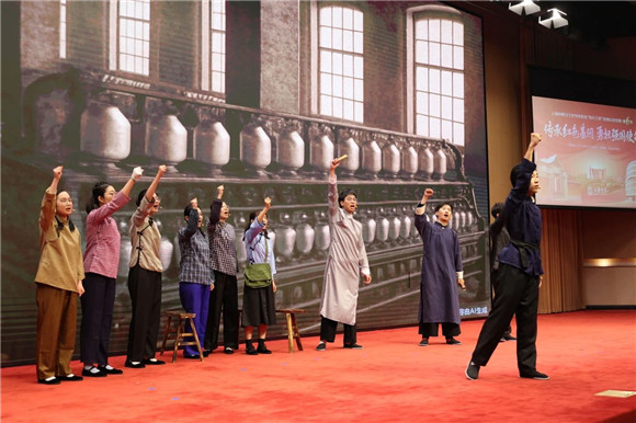 在第一篇章“五卅精神铭史册百年薪火续基因”中,马克思主义学院守常党支部学生表演情景剧《五卅风雷》,生动再现了五卅运动时期的激烈斗争场景与革命先辈的英勇无畏精神,让在场师生仿佛穿越时空,置身于那段波澜壮阔的历史之中,深刻感受革命先辈们为了国家和民族的尊严,挺身而出、英勇斗争的精神。
