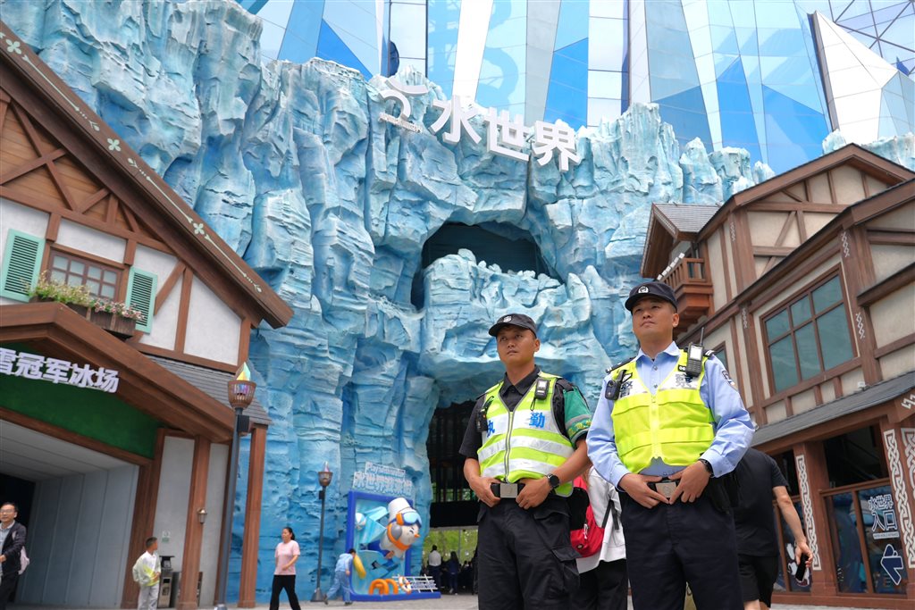 图为浦东公安分局民警在上海海昌海洋公园巡逻