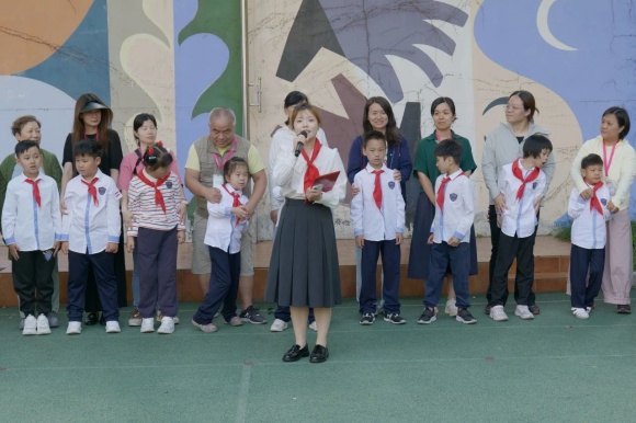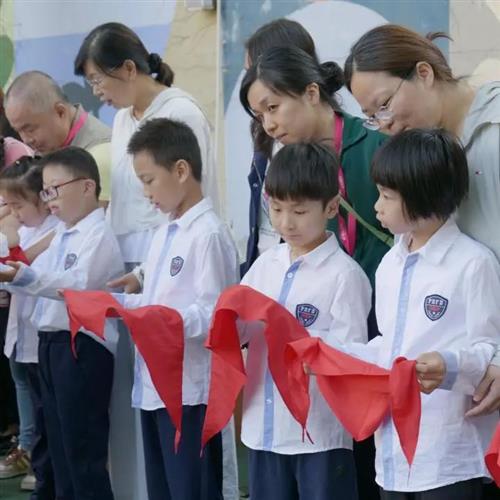 清晨,庄严的升旗仪式结束,二年级新队员的入队活动正式拉开序幕。入队仪式在嘹亮的出旗曲中缓缓开启,鲜艳的红色队旗在旗手们的护卫下迎风飘扬。鲜红的队旗下,大队辅导员宣读了组建中队的决定和新队员名单。随后,在欢快的乐曲声中,二年级新队员们戴上了鲜艳的红领巾。新队员们高举右拳,在队旗下庄严宣誓,铿锵有力的誓言彰显了新时代少先队员坚定的信念。