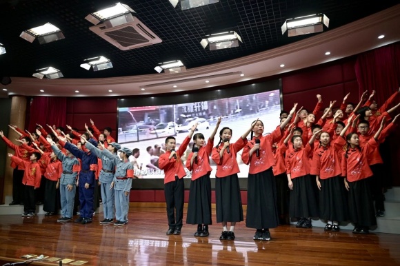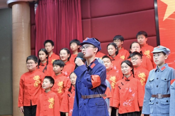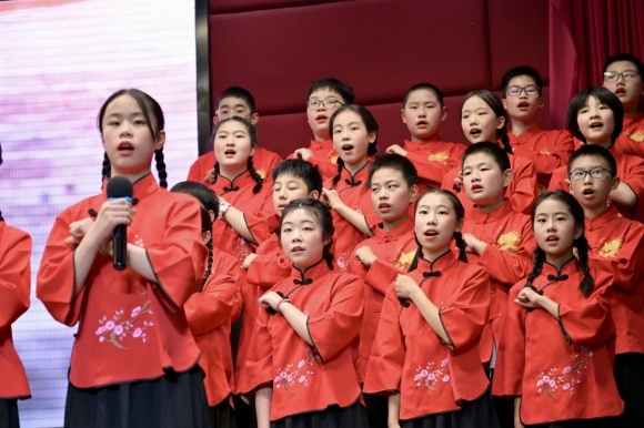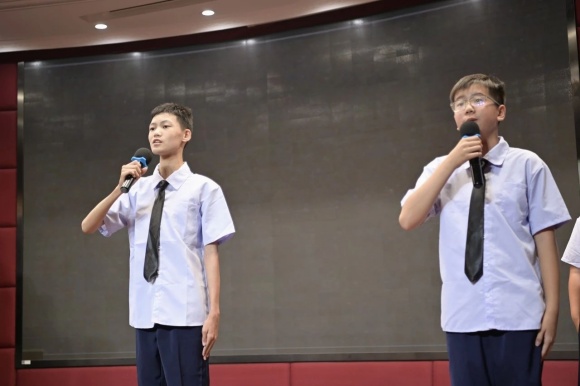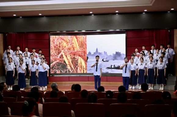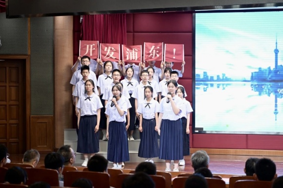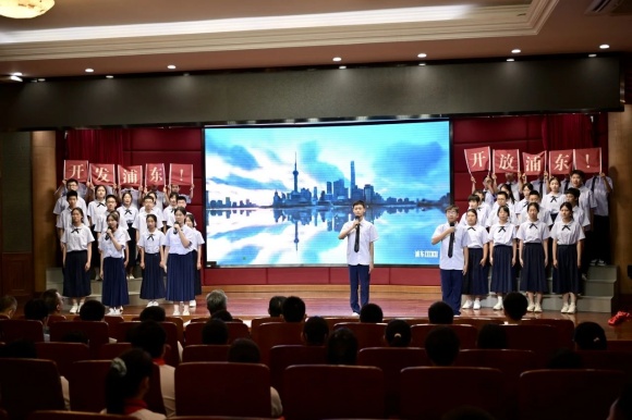 初一7班的原创诗朗诵《浦东开放路建实奋进歌》,深情回顾了浦东开发开放的壮丽历程,展现了新时代学子对家乡的热爱与对未来的憧憬。