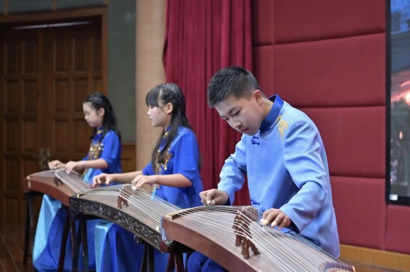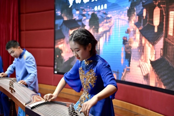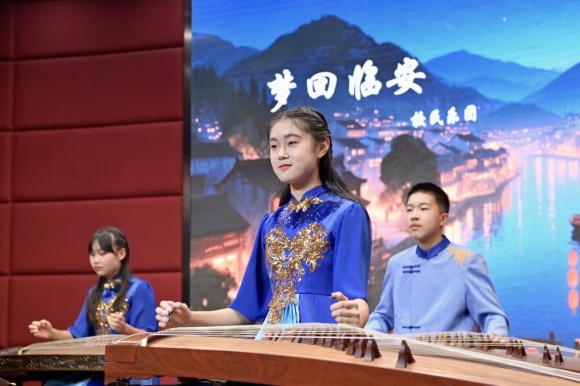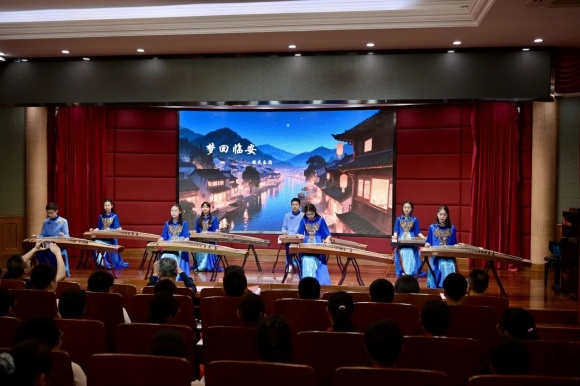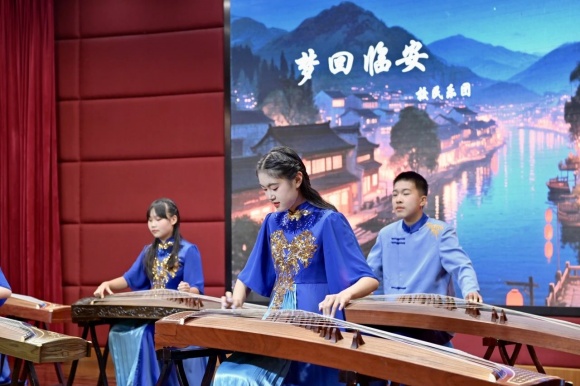 上海市建平实验中学民乐团以一曲《梦回临安》引领我们穿越千年,古筝的悠扬旋律仿佛带我们漫步在杏花微雨的江南水乡,感受那份温婉与宁静。