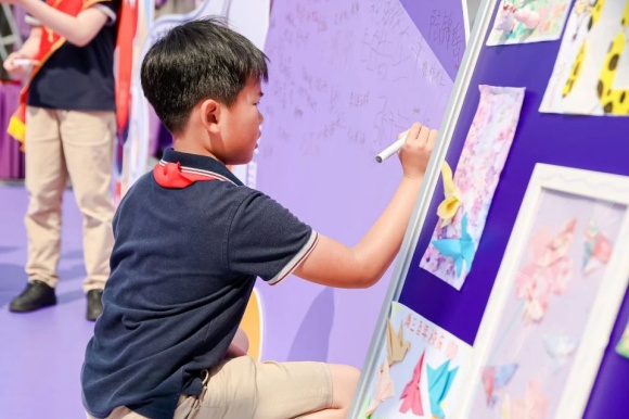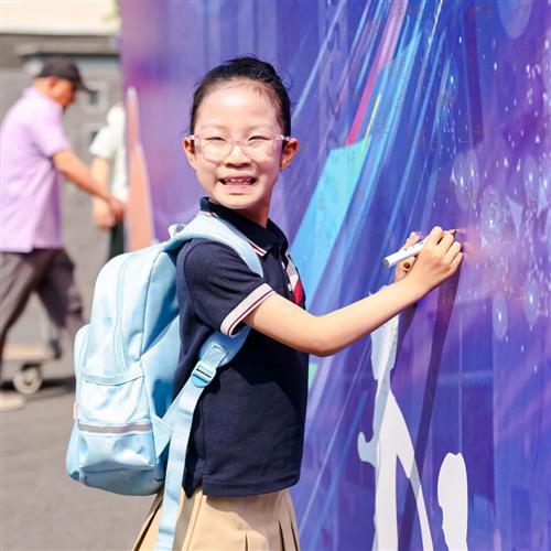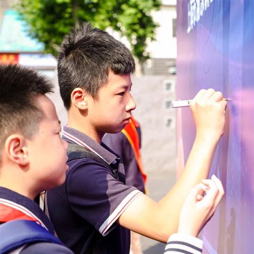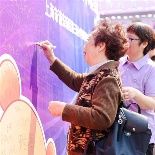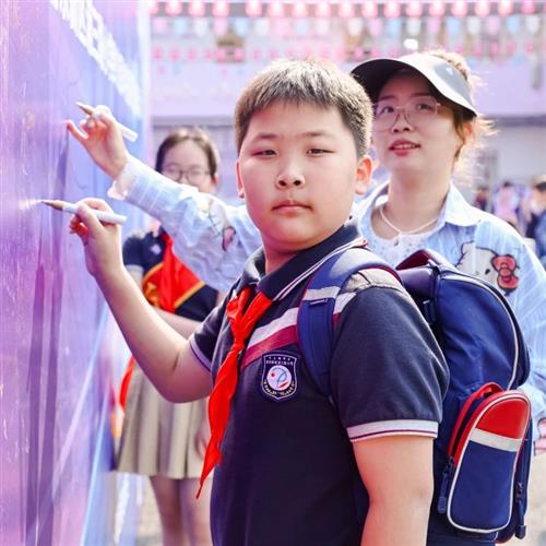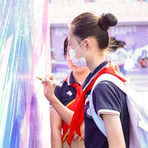 入口处,独具匠心的乒乓板形状签名墙成为焦点,吸引着每一位来宾、师生以及家长的目光。他们纷纷在签名墙上挥笔留言,留下自己的姓名与对学校的美好祝愿。这些饱含深情的印记,宛如一份份珍贵礼物,献给浦三路小学的百年盛典。