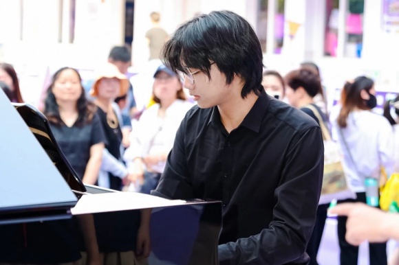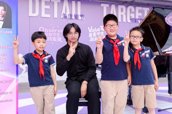 小舞台上,杰出校友郁乐天大哥哥倾情演奏,用一首首悠扬的钢琴曲向母校百年华诞致敬,为校园增添了一抹欢快的旋律,共同庆祝母校的辉煌历程。