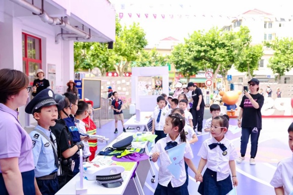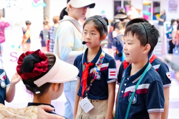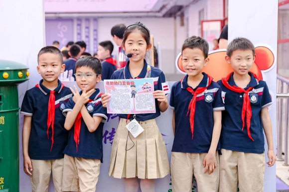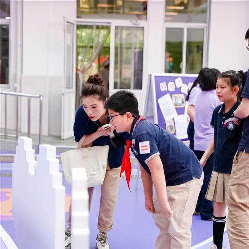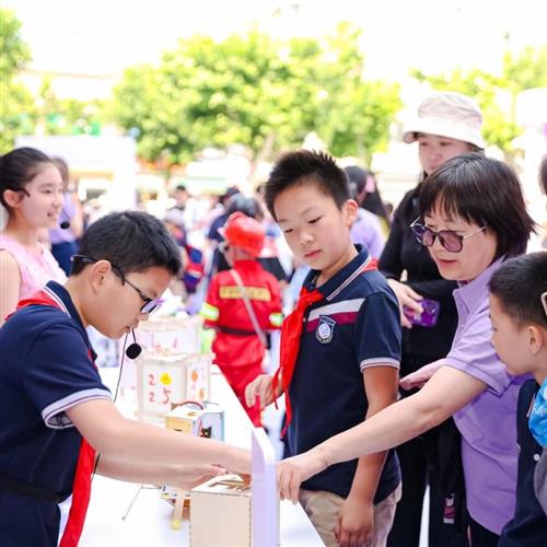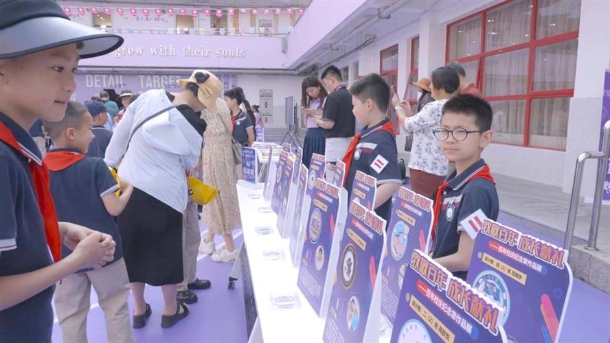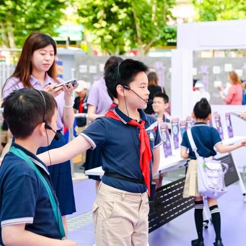 来宾们手持特制纪念手册,沿着校园导览图设定的路线徐徐漫步。一路上,由学生组成的爱乐讲解员队伍热情洋溢,他们声情并茂地介绍着学校的历史沿革、特色课程以及所获荣誉成就。由学生组成的爱乐讲解员介绍学校,更直观地了解校园文化。学生作为校园文化讲解员,不仅是信息的传递者,更是文化价值的塑造者与传播者。来宾们仿佛穿越过了浦三路小学的百年岁月,直观领略到这所百年学府独特的校园文化与无穷的教育魅力。