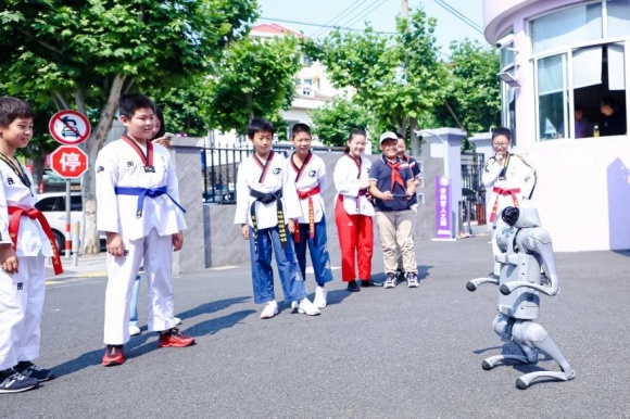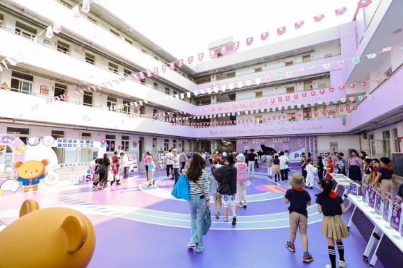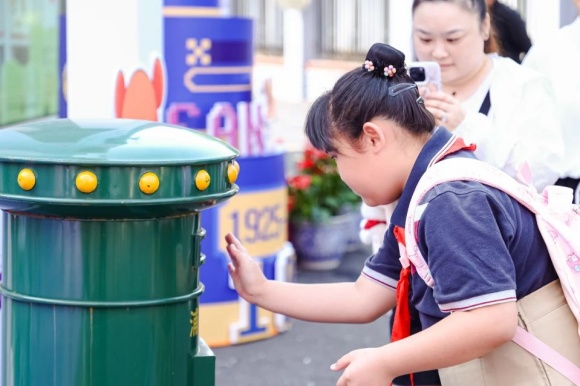 “多彩集市”“科技场域”等主题区域的展示互动,让人仿若穿梭于时空隧道之中,一探浦三路小学百年的沧桑变迁与未来发展的宏伟蓝图。集市门口就连“机器狗”也加入到迎宾队伍中,欢迎来往的客人。
