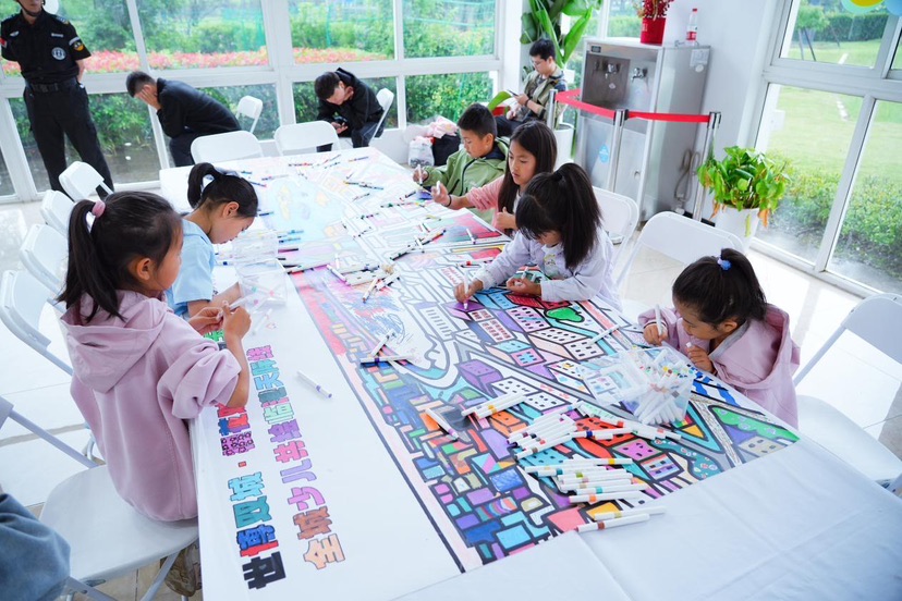 在非遗体验区,孩子们化身小小文化传承人,亲手尝试拓印、制作手工折纸粽子,感受传统文化魅力。此外,DIY 美妆镜、人脸彩绘、中海博文创摊位前也人头攒动,孩子们尽情发挥创意。“我为临港增色添彩”绘画区成为孩子们的创作天地,他们拿起画笔,在3米长的临港天际线轮廓图上尽情挥洒,共同完成的巨作将于8月在临港新片区展览中亮相,每位参与的小朋友名字都将出现在画作作者栏。