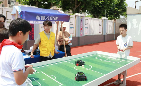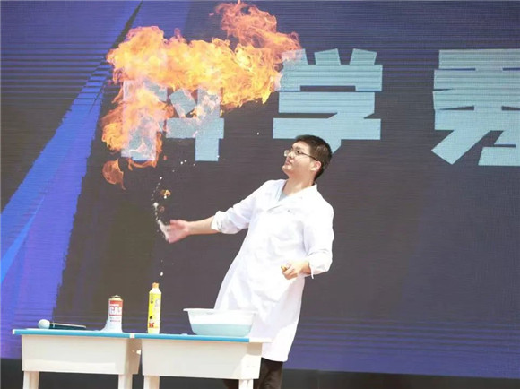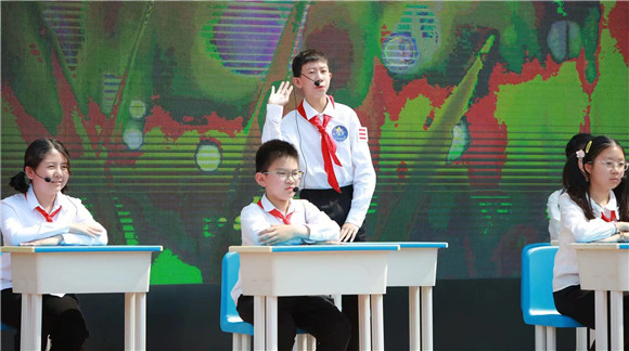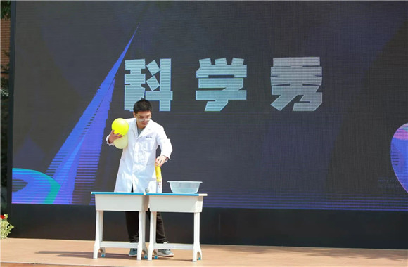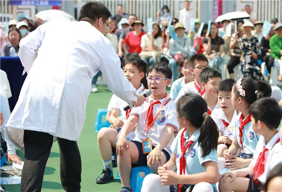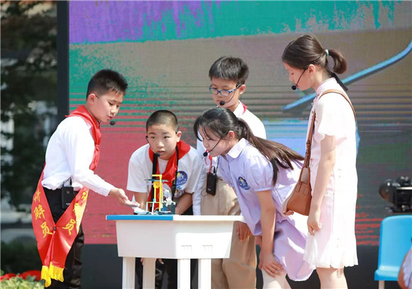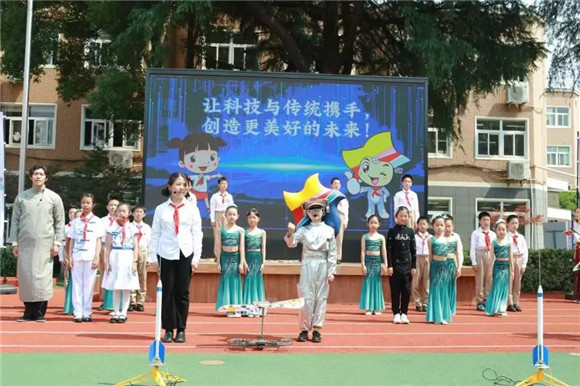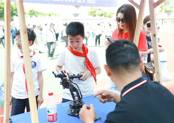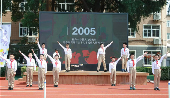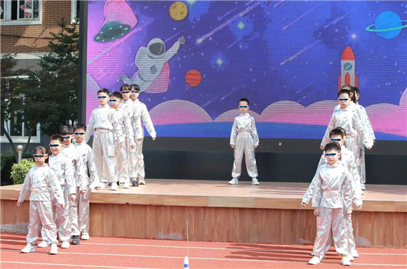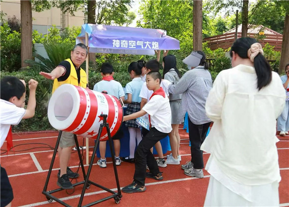 学生代表放飞火箭,周校长宣布游园体验活动正式开始!