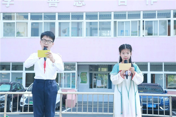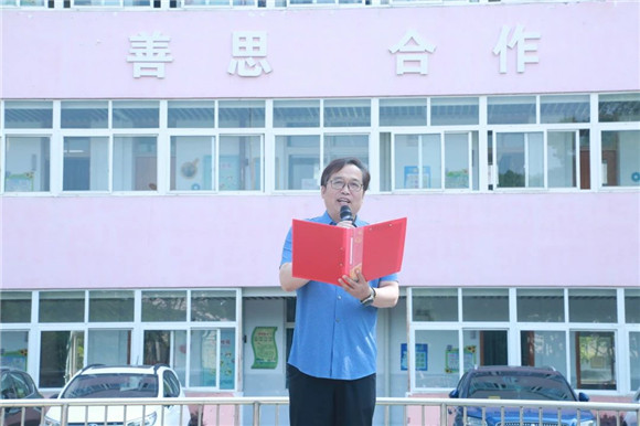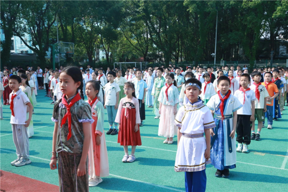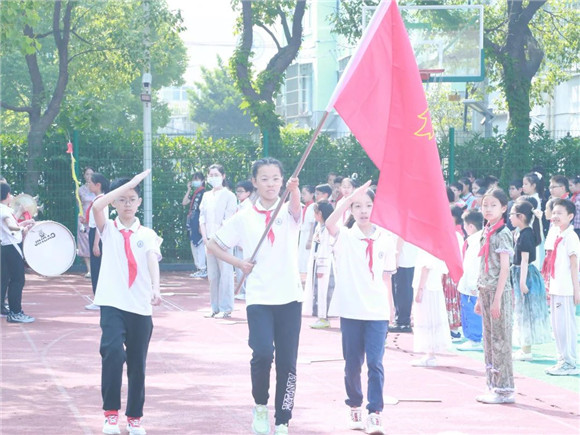 鼓号铿锵,队旗飘扬!全体师生齐聚操场,在激昂的出旗曲中,鲜艳的大队旗迎风展开!王校长暖心致辞,送上六一祝福,并鼓励同学们:“让非遗文化在童心中生根发芽,做传统文化的守护小使者!”