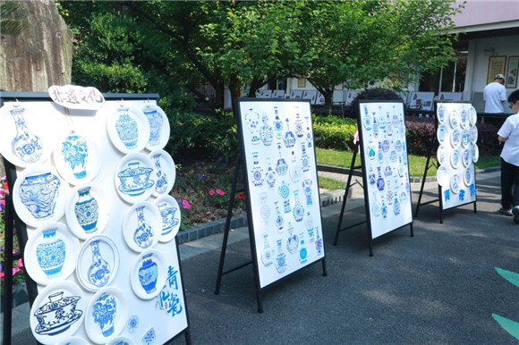 艺术节中的优秀作品也在校园走道上惊艳上线,更有非遗主题展板沿路列队,从瓷器烧制技艺到木船制造技艺,从雕版印刷到活字印刷……一步一故事,转角见千年!