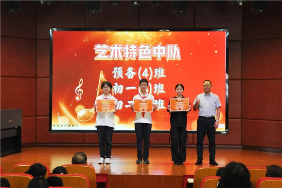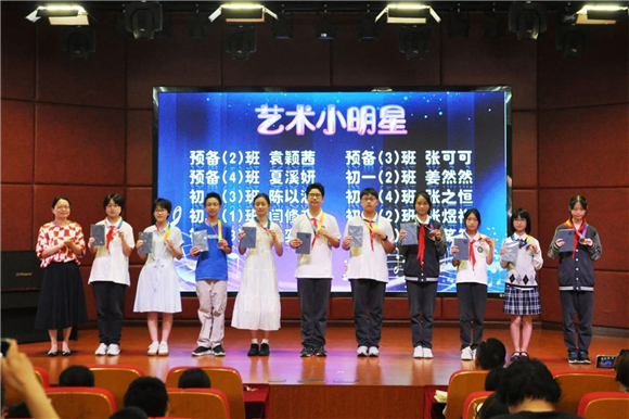活动中,“艺术小明星”和“艺术特色中队”颁奖仪式将气氛推向高潮。绘画能手、舞蹈新秀、乐器达人等个人奖项获得者,以及以黑板报、配音秀、课本剧等形式展现集体创造力的中队代表依次上台领奖。他们用坚持与热爱诠释了艺术的力量,成为校园里闪亮的“艺术之星”。