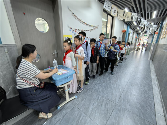 学生通过在各个场馆中文明参观、认真学习、有序排队,用规范的行为表现赚取“积点章”。累积的奖章可以兑换舞龙舞狮、冰壶、版画、篆刻、人工智能等社团的活动体验。在真实的活动情境中引导知行合一,进一步培养了学生的规则意识与规划能力。