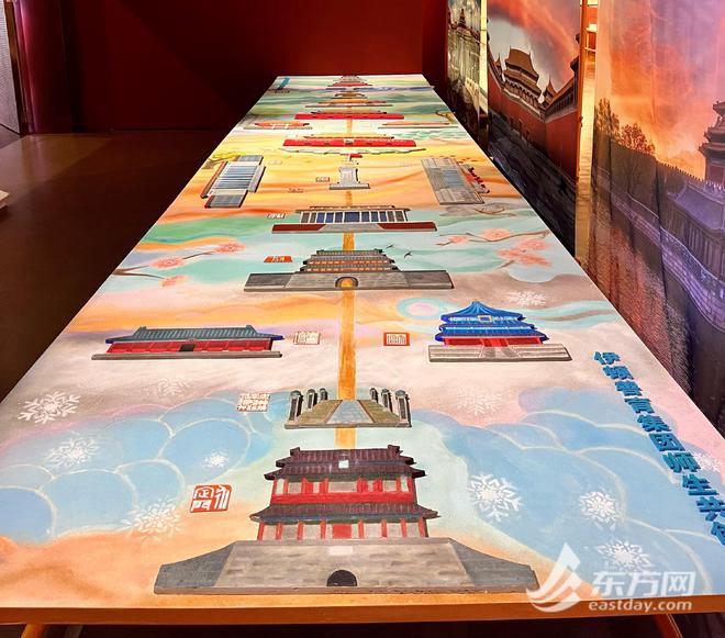 为共襄京沪文化盛举,丰富展陈内容,北京首都博物馆的三件镇馆之宝——西周时期的青铜器伯矩鬲、班簋以及元青花凤首扁壶与2024年7月27日世界遗产大会审议通过北京中轴线为世界文化遗产时,大会主席使用的议事槌也亮相上海巡展,助力京沪两地深化文化交流与合作,为上海市民带来极致文化艺术熏陶。此外,7.8米北京中轴线微缩景观模型与伊顿国际幼儿园师生共同创作“北京中轴线”“上海陆家嘴”两幅巨型主题沙画同场展出。