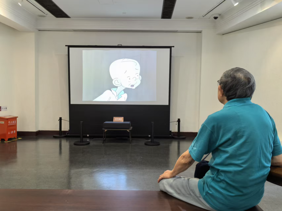 在二楼视频区域播放的三毛相关影片,也吸引了不少市民游客,有白发老人,也有五六岁的幼儿,他们被电影情节所吸引,共同坐下来看得津津有味。