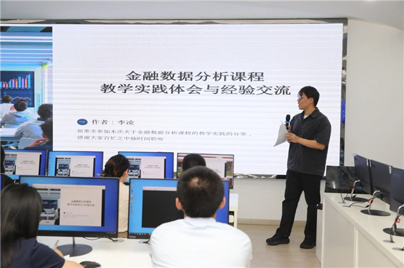 李老师首先提出在教学中应当“以学生未来需求为导向”,注重对标行业需求,通过梳理金融信贷分析、反欺诈分析、量化交易等领域的核心技能,提炼适合高中生的Python编程、Linux系统操作等基础能力。紧接着,李老师指出,在教学过程中还应当轻理论重实践,在课堂上利用5-10分钟讲解理论,其余时间通过案例演示与学生实操结合,如利用阿里云平台完成信贷评分建模项目,通过这种方式让学生直观感受实际工作,从而更好培养学生的实践能力,激发对未来方向选择的兴趣。此外,他还强调应当借力AI赋能,引导学生通过AI工具辅助编程、解读前沿文献,降低学习门槛,提升探索效率。最后,李凌老师提出了关于教学环境关注硬件配置的设想。进一步优化金融实验中心的硬件配置,引入专业数据终端和隔离式编程工作站,为课程深化提供支持。比如通过Tushare金融数据终端让学生模拟实战环境,激发对金融科技的兴趣。