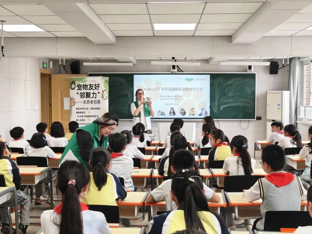 志愿者们分别走进新里137、66梧桐院和徐汇区第一中心小学,为社区居民、爱猫人士、小朋友们做科普讲座,让“动物友好”从理念落地为行动,探索多元参与、社区共治“共建共治共享”的更多可能。