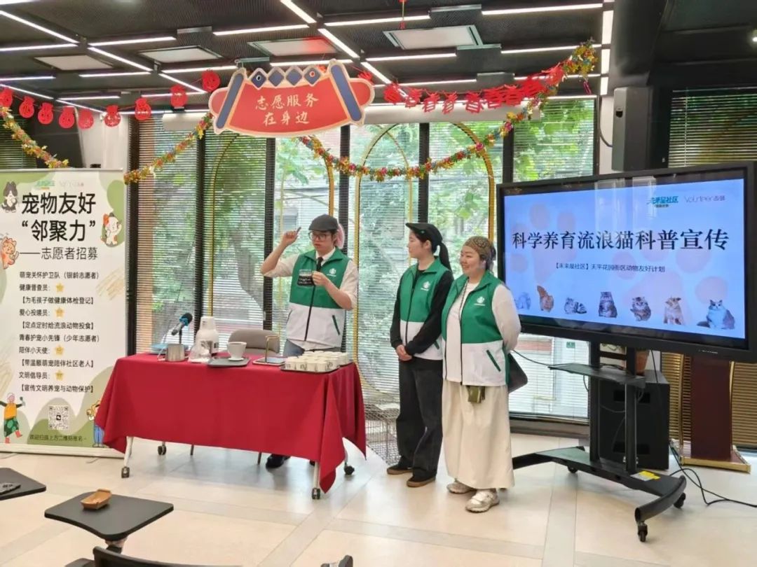在梧桐片区的66梧桐院“大课堂”,来自志领志愿服务发展中心的老师为社区居民和志愿者介绍本次天平花园街区动物友好计划项目背景,并做志愿者招募。在构建人宠和谐共生的未来星社区愿景下,天平花园街区动物友好计划项目围绕流浪猫规范投喂点建设及科普宣传,为社区流浪猫治理难题提供创新解法,全力打造充满温度的动物友好家园。