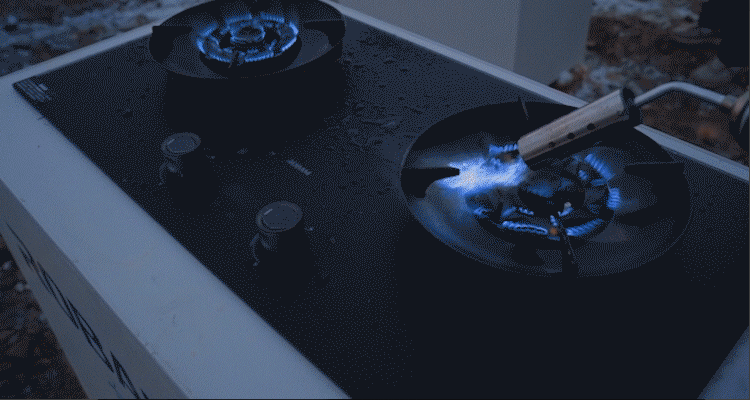 挑战三——极速断火防干烧。把无水的烧杯放在燃烧的火焰上,老板燃气灶在短短两秒内就识别出干烧状况,并立刻断火。这得益于它的三段式防干烧系统,高精度温感探头实时监测锅底温度,达到干烧阈值即可熄火断气,并且蜂鸣示警。
