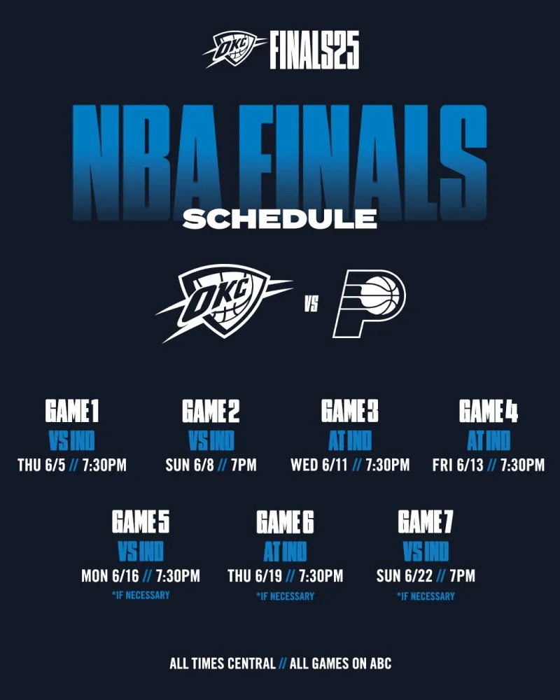 NBA官方公布24-25赛季总决赛赛程,步行者vs雷霆的系列赛G1将于北京时间6月6日正式打响。步行者、雷霆分别时隔25年、13年重返总决赛,这也是自2007年以来NBA总决赛首次出现两支均未在当赛季参加圣诞大战的球队对决。