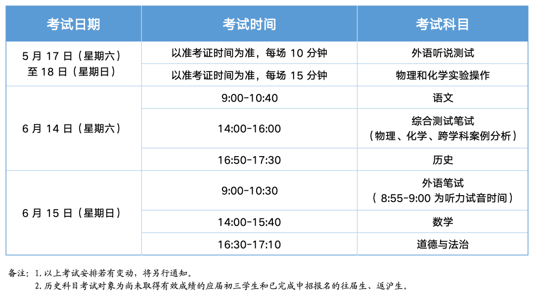 今年上海市高中阶段学校招生以初中学业水平考试语文、数学、外语、道德与法治、历史、体育与健身和综合测试(含物理、化学、跨学科案例分析、物理和化学实验操作)的成绩计分,总分750分。为给广大考生营造安静的复习、休息和考试环境,上海发布通知启动“静音模式”,高考(6月7日至9日)和中考(6月14日至15日)考试时段,禁止考场周围100米内昼间建筑施工作业。高考、中考复习迎考和考试期间(5月31日22时起至6月15日6时止),上海市范围内禁止涉及产生噪声污染的夜间建筑施工作业。