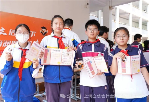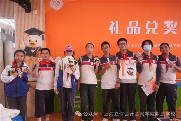 季霜校长亲自设计的、首次亮相的吉祥物“立小信”系列奖品:手卡、帆布袋、徽章、冰箱贴以及种子卡等,备受孩子们追捧。