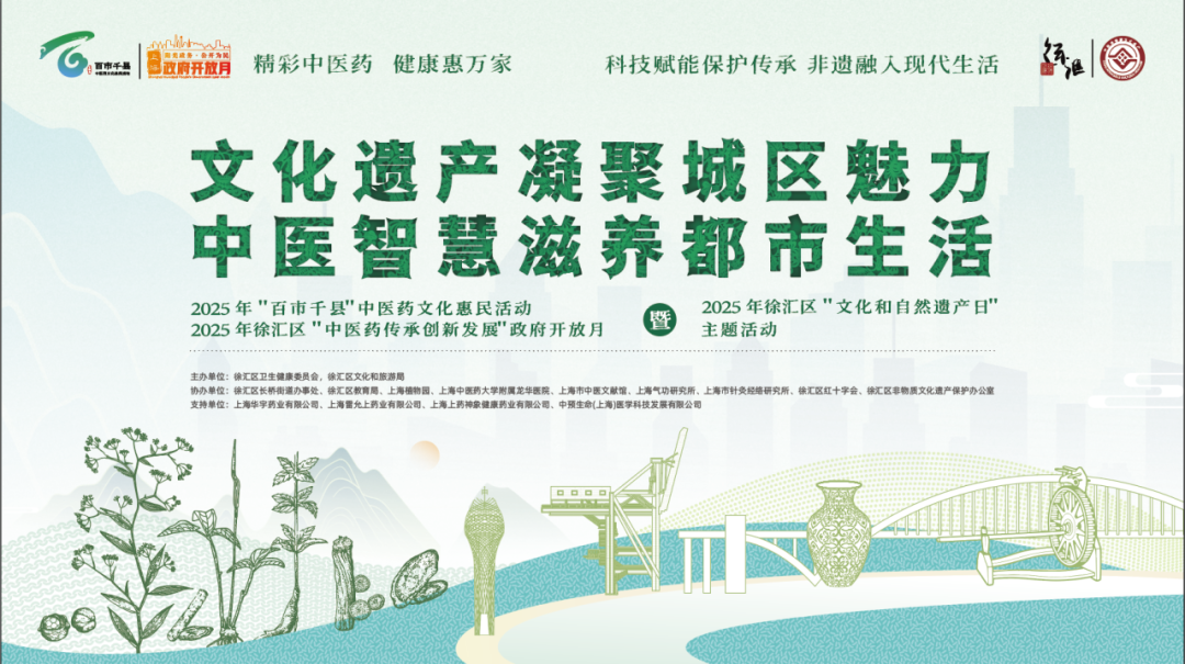 以“文化遗产凝聚城区魅力,中医智慧滋养都市生活”为主题,徐汇区文化和旅游局与徐汇区卫生健康委员会,共同主办2025年“百市千县”中医药文化惠民活动·2025年徐汇区“中医药传承创新发展”政府开放月暨2025年徐汇区“文化和自然遗产日”主题活动。