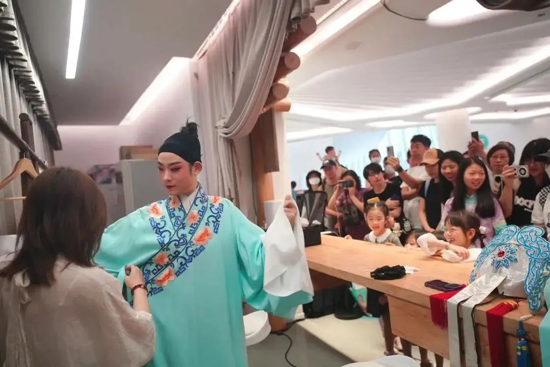 游园会最具视觉冲击力的“戏曲梳妆台”,每日定时展示戏曲妆造全过程。京剧《四郎探母》中铁镜公主的旗头旗装与老生扮相,沪剧《探情》中王魁、敫桂英妆发造型,越剧《红楼梦》贾宝玉徐派小生束发贴片,淮剧《天女散花》三米长绸妆造等,都将通过演员开箱、勾脸、穿戴一一呈现给观众,打破“台前幕后”的次元壁。