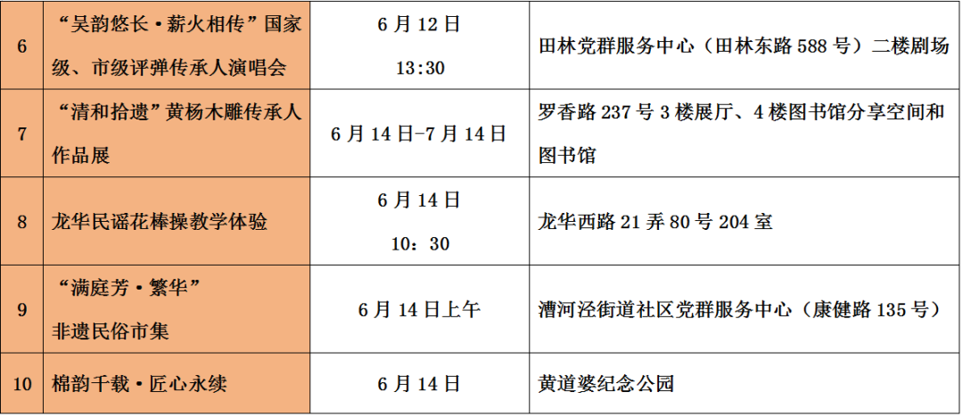 2025年6月14日是中国第八个“文化和自然遗产日”,今年“文化和自然遗产日”的主题是:“融入现代生活——非遗正青春”,当天,徐汇区各街镇及保护单位将举办丰富多彩的非遗活动。