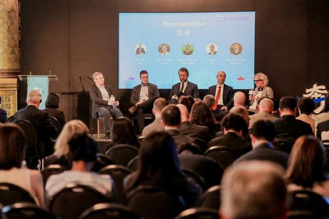 中英金融界嘉宾围绕“水岸经济的全球范式与金融引擎”展开对话。著名财经作家吴晨、彭博欧洲区政府事务负责人萨利安·泰勒、安永帕特农企业融资业务合伙人马库斯·理查兹、浦发银行伦敦分行行长李舸、伦敦发展促进署金融科技及互联网业务主管大卫·巴彻分享全球产业链重构中的跨境金融服务创新。