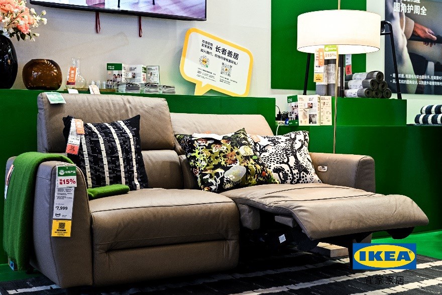 家,是老年人最熟悉和依赖的港湾。首次参展老博会的宜家上海,则带来了其对“银发族”居家需求的深度洞察与适老化家居解决方案。在其位于W2馆E35的展位上,一把看似普通的RULLERUM鲁勒鲁姆电动沙发,却能通过电动调节角度,轻松实现坐躺功能,满足长者居家休憩的舒适性。经典的POÄNG波昂扶手椅则以其舒适曲线和弹性,成为客厅里的“常客”。