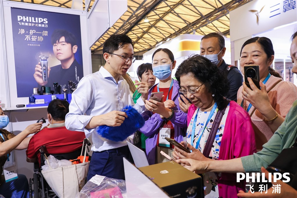 同样关注银发族日常健康与生活品质的还有**全球健康科技品牌飞利浦。此次老博会上,飞利浦带来了其电须刀、Sonicare声波电动牙刷、智能温控高速吹护机等多款健康科技产品。