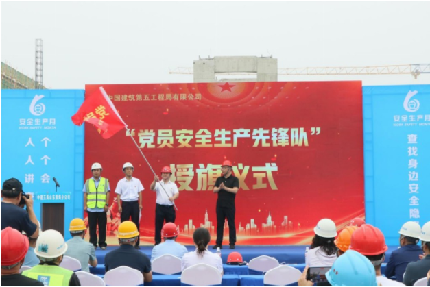 活动通过为“党员安全生产先锋队”授旗、青年安全宣讲、项目经理宣读决心书等方式,让安全生产意识入耳、入心、入行。活动中,项目以现场直播形式开展消防专项应急演练,进一步提升项目应对各类突发事故的处置能力。演练结束后,与会领导为一线工友代表送上防暑慰问品。