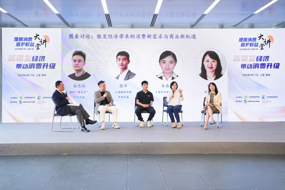 2025年6月17日下午,由上海市消保委、上海市消保基金会主办,上海华夏文化经济促进会、上海静安国际中心协办的2025年第3期(总第八期)“提振消费维护权益”大讲堂在静安国际中心成功举办。本次活动主题为“新银发经济带动消费升级”,吸引了来自消费品知名企业、市消保基金会理事单位、上海市老年大学代表及新闻媒体记者等170余人参加。随着我国老龄化进程加速,“银发经济”已成为消费市场的关键增长极之一。近年来,以白领、教师、公务员等职业群体为代表的“新退休群体”催生了更具活力与潜力的“新银发经济”。会上,各方代表深入探讨了如何更好地推动新银发经济发展,激发消费市场的新活力;深入探讨了如何更好地借助新银发经济带来的巨大动能,引导消费产业和相关产品服务的创新升级。