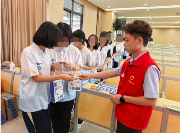 活动伊始,志愿者带领初三学子跳起“放松健康操”,通过简单动作与深呼吸缓解备考压力。随后的心理团辅课上,老师结合案例讲解与互动体验,帮助同学们识别压力信号、掌握情绪管理技巧,树立积极心态。高潮环节“看图猜人物”考验团队协作,学生们组队模仿、踊跃猜测,现场欢呼不断。通关队伍获颁“金榜题名”徽章,既是鼓励,亦是纪念。此外,每位学生还领取了“中考加油包”,收获满满信心。