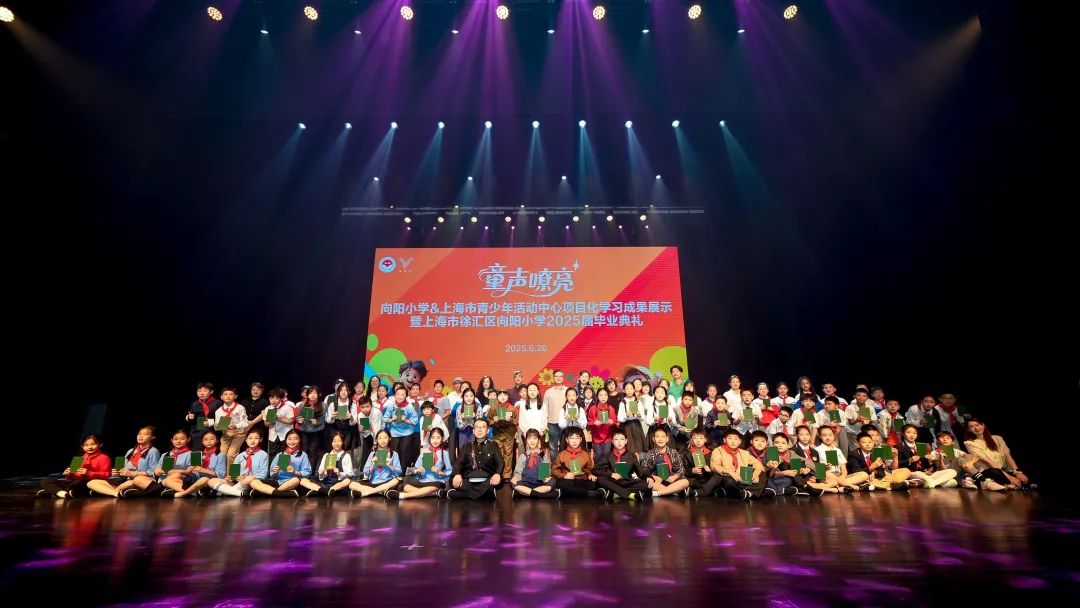 “小毛头”在旧上海街头的卖报声穿越时空,地下少先队“铁木儿”团的秘密行动惊心动魄……6月26日,上海市徐汇区向阳小学2025届毕业典礼的舞台上,五年级学生们用真挚的表演,将一幕幕承载着学校红色基因与上海少先队发展史的动人故事娓娓道来。这场名为《童声嘹亮》的舞台剧,不仅是孩子们献给母校的毕业礼物,更是该校携手上海市青少年活动中心,以创新的项目化学习方式,将大思政课深度融入五年级毕业课程的生动实践和丰硕成果。