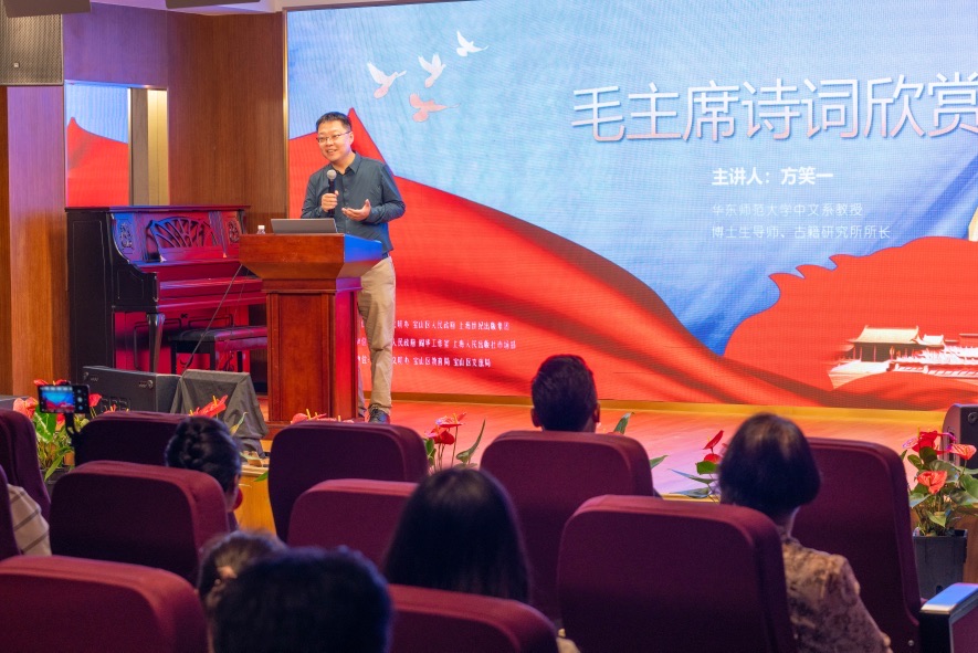 东方网记者熊芳雨6月30日报道:“七一”前夕,行知读书会精心策划了一场红色文化主题活动,为广大观众带来了一场深刻而富有内涵的精神盛宴。此次活动特别邀请到华东师范大学中文系教授、博士生导师、古籍研究所所长方笑一,他做客行知读书会,以独特的视角和深厚的学术功底,从党史的角度深入解读毛泽东诗词,带领观众一同领略诗词中蕴含的革命情怀与文学魅力。
