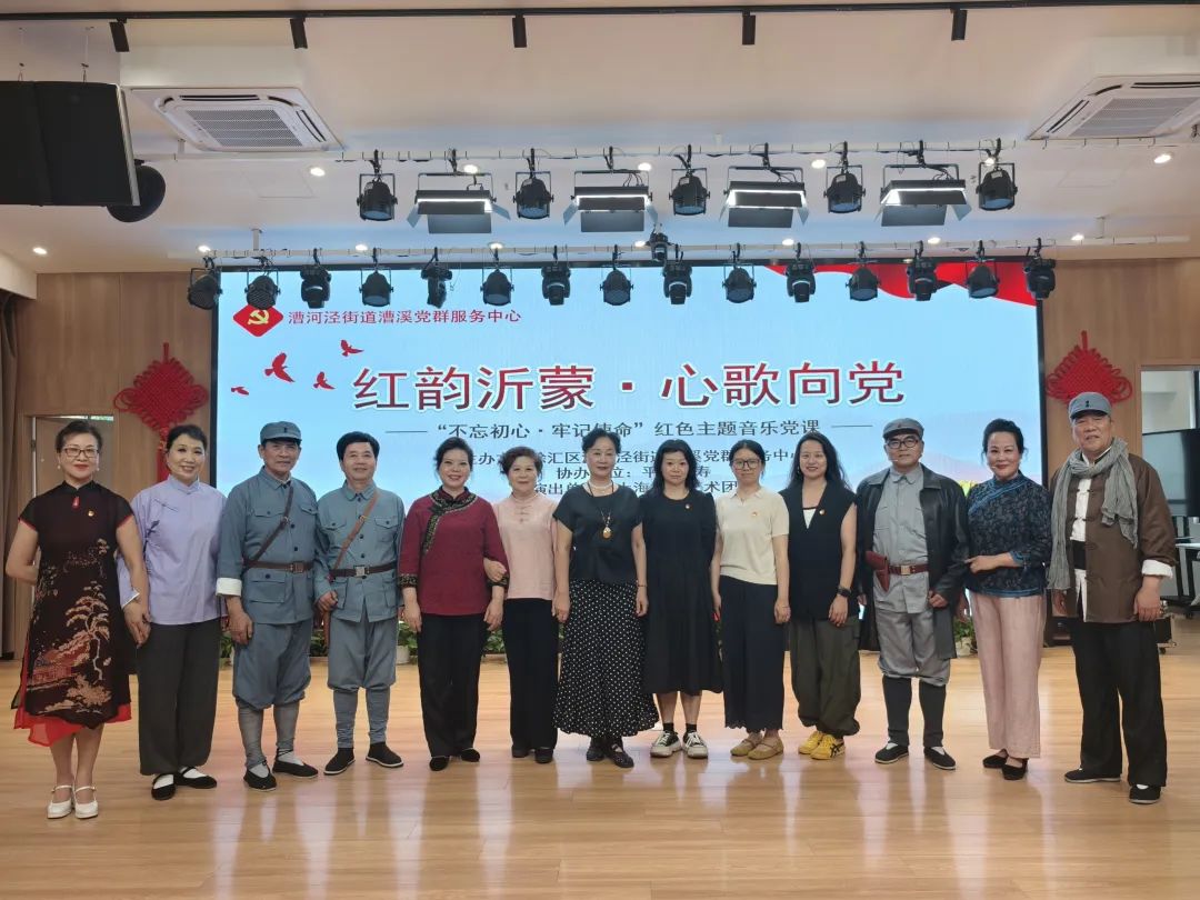 近日,徐汇区漕河泾街道漕溪党群服务中心融艺园内旋律激昂、掌声不断。在建党104周年与中国人民解放军建军98周年的重要历史节点,中心携手上海振华艺术团倾力呈现“红韵沂蒙·声动漕溪”主题音乐党课。艺术团演职人员以14首经典歌曲为媒,引领观众重温烽火岁月,深刻感悟沂蒙精神。
