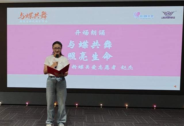 上海粉蝶家园志愿者赵杰开篇朗诵《与蝶共舞 照亮生命》