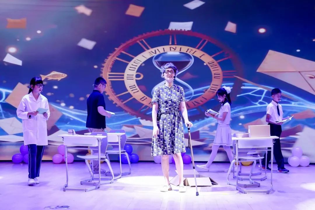 剧中,四位“成年人”因校庆邀请重逢,舞台上重现了校园生活的动人片段:白发苍苍的音乐老师带领合唱队深情演唱《我有一个梦》;学生们在爱心义卖活动中展现才华并获得肯定;创造营课程里,孩子们从设计仿生装置的争执走向理解与合作,最终成功;曾经班里的“小霸王”更是在运动会中展现闪光点,完成蜕变成长。这些源自真实校园的故事,经过师生前期充分的剧本研讨、精心准备、录制与反复排练,最终被真挚地搬上舞台。整场演出情感真挚饱满,交织着喜悦与温情、欢笑与泪水。