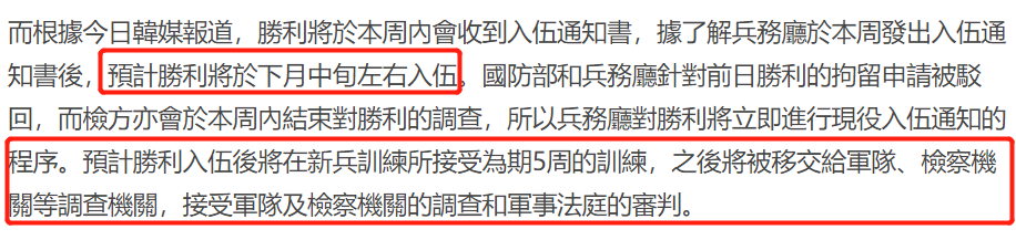 在入伍之前,检方已经对胜利进行了为期7个月的调查,并提出了包括惯性赌博、性交易投资等七项嫌疑,但是幸运的是,法院再次驳回了胜利的拘留申请,再次避过了拘留。