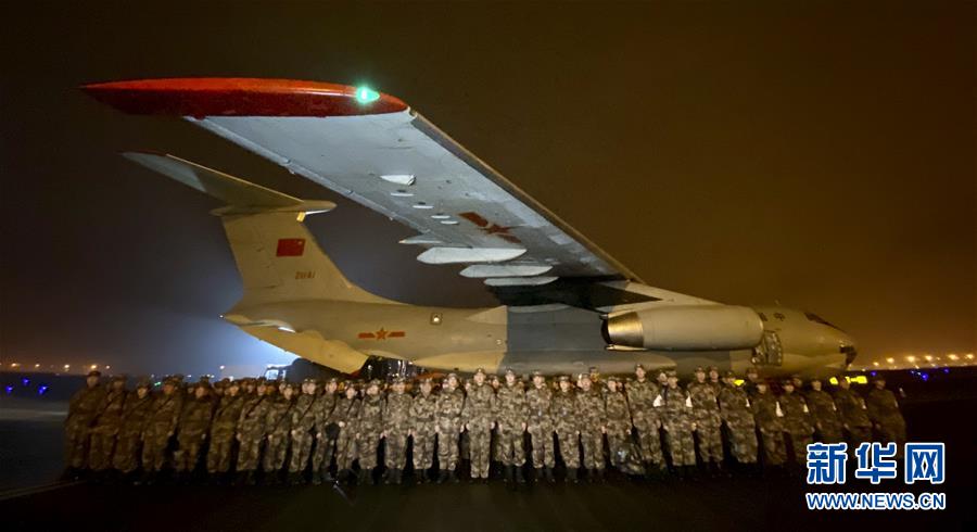 1月24日晚,由陆军军医大学抽调精干医务人员组建的医疗队在重庆江北国际机场停机坪集结,准备连夜驰援武汉。(图源:新华社)