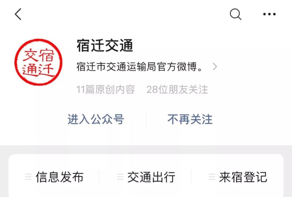 途径1:关注宿迁交通