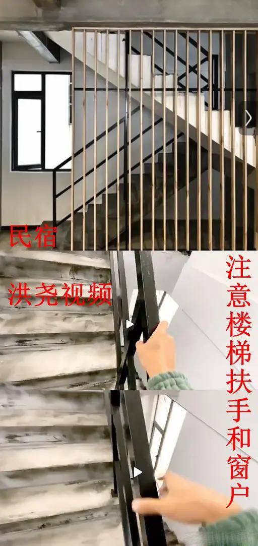 民宿的内部非常明显就是工业风,黑色的楼梯扶手和黑色边框的窗,和洪尧晒出的视频都能对上。