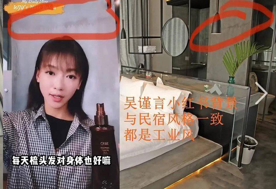 吴谨言日前民俗里边录制了一段小视频,虽然没有露出很多背景,但墙壁和这家工业风民宿是一样的,都是水泥色,连印记都一样。