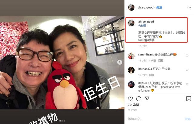 苏施黄在社交平台上晒出和钟楚红一起庆生的照片,并透露红姑近日在学习修补陶器“金继”手艺(日本的传统工艺,将本来损毁的陶瓷,利用修补再创造一件独一无二的艺术品),还大赞红姑的造诣越来越高。
