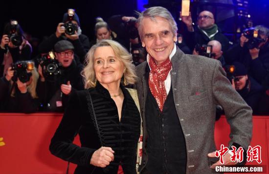 当地时间2020年2月20日,德国柏林,第70届柏林电影节红毯。评委会主席杰里米-艾恩斯携妻子亮相。